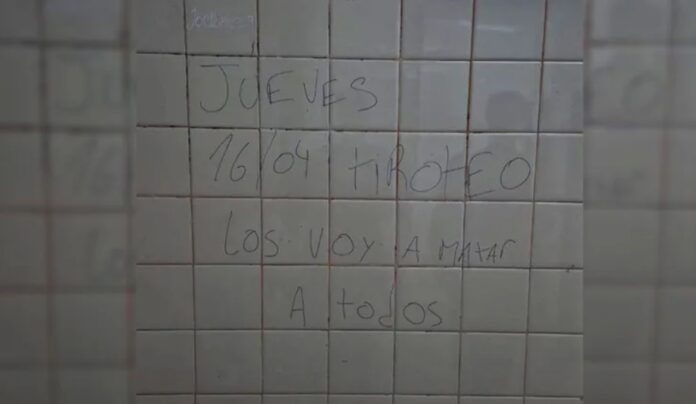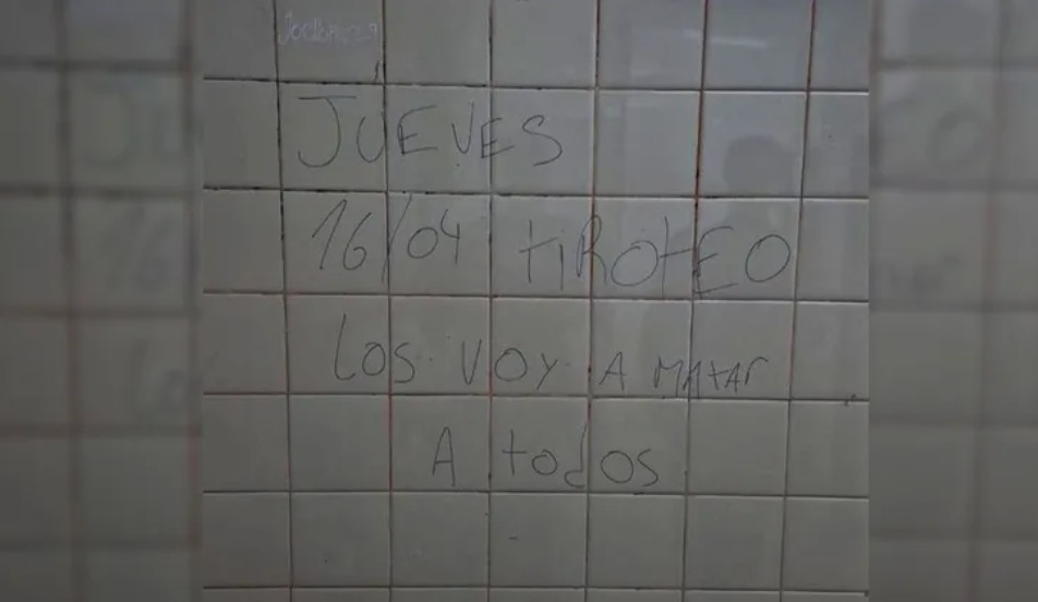 El mensaje: «MIÉRCOLE TIROTEO» (SIC) fue hallado por un auxiliar de servicio y generó preocupación inmediata entre estudiantes, docentes y familias. El hecho se conoció en un contexto ya atravesado por situaciones similares, como la que se investiga en la EPET N° 1 de Cutral Co, donde también se reportó una amenaza en las últimas horas.