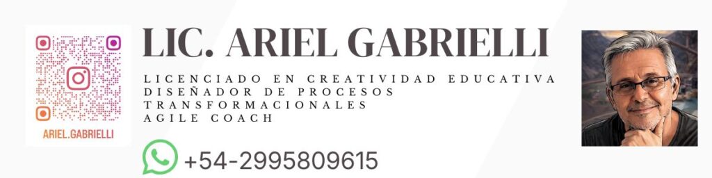 Autor: Ariel D. Gabrielli, con más de dos décadas dedicadas al desarrollo humano y organizacional, combina creatividad, neurociencia y metodologías ágiles para acompañar procesos de innovación y cambio cultural. Certificado como Agile Coach, ha impulsado programas de liderazgo, coaching y gestión en diversas instituciones públicas y privadas. Su enfoque integra la educación creativa y la agilidad como motores de transformación personal y colectiva.