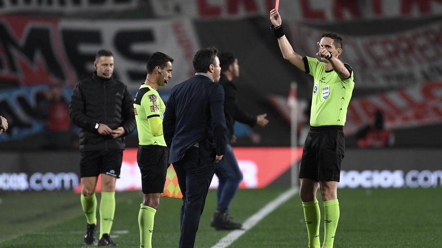 El entrenador de River Plate, Marcelo Gallardo provocó con un insulto al árbitro de la derrota por 2 a 0 como local ante Godoy Cruz, Nicolás Lamolina, y éste le respondió con una tarjeta roja, para luego suspender la habitual conferencia de prensa pospartido.