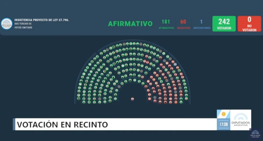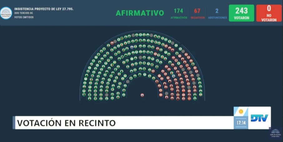 El Ejecutivo necesitaba al menos un tercio de los votos más uno para sostener los vetos, pero quedó casi 20 legisladores lejos de lograrlo. El tiempo de debate se redujo tras un acuerdo para limitar la lista de oradores y tratar ambos temas de forma conjunta.