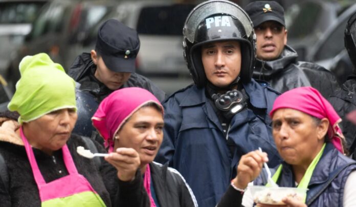 La manifestación incluyó una olla popular organizada por Barrios de Pie, que eligió ese punto como forma de visibilizar el impacto que, según plantearon, tienen las medidas oficiales sobre los sectores más vulnerables. Entre las consignas desplegadas, se destacó una que apuntó a la situación social en contraste con la dirigencia política.