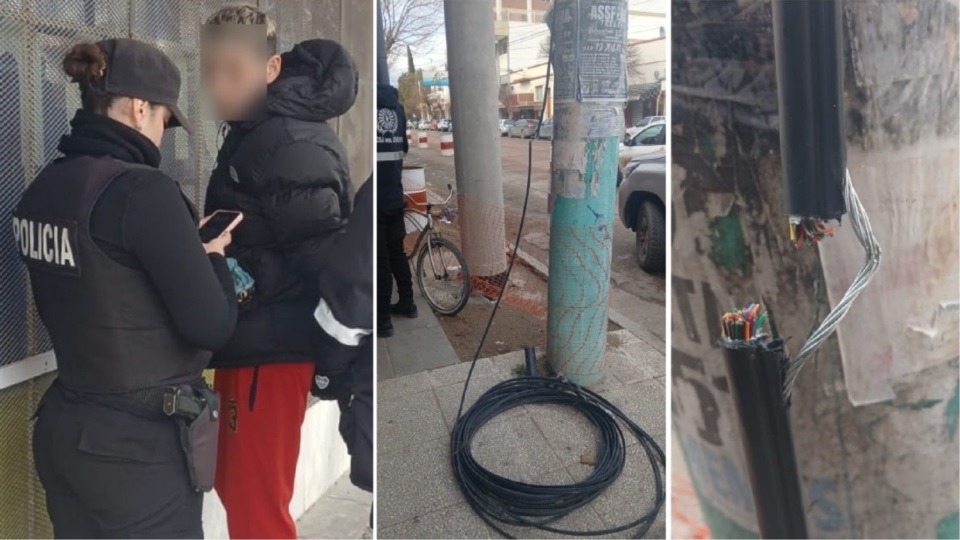 Inmediatamente intervino personal de la Comisaría Primera y detuvo al individuo, colocándole las esposas. Se constató que el hombre había intentado sustraer 25 metros de cable utilizando una tenaza.