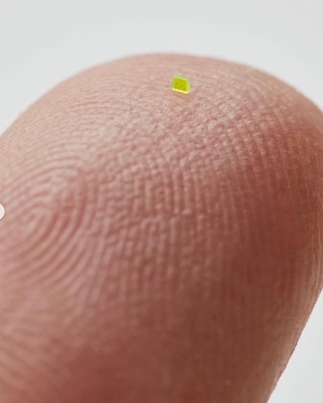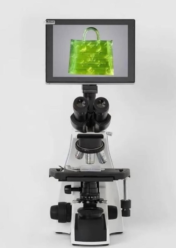 El diseño replica el icónico modelo Louis Vuitton OnTheGo tote, pero en una escala extrema: apenas 657 × 222 × 700 micrómetros, lo que lo vuelve más pequeño que un grano de sal y solo visible mediante microscopio.