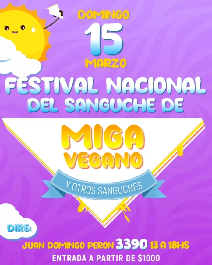 El festival reunirá emprendimientos gastronómicos especializados en sánguches de miga veganos, además de ofrecer barra de bebidas, tragos y café, y espacios para compartir durante toda la jornada.