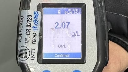 El test de alcoholemia realizado en el lugar arrojó un resultado de 2,07 gramos de alcohol por litro de sangre, más de cuatro veces el límite permitido. La motocicleta fue secuestrada y el conductor, identificado con las iniciales P.A.P., quedó a disposición de la justicia.