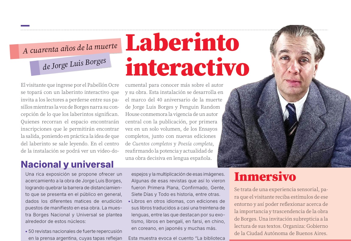 En esta edición aniversario, la Feria sumará nuevos espacios inmersivos, una Pista Central con shows en vivo y un pabellón dedicado a experiencias expositivas, donde se integrarán arte, tecnología y literatura. También habrá homenajes destacados, como el dedicado a Jorge Luis Borges, a 40 años de su fallecimiento.