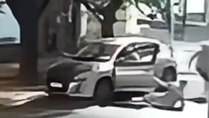 En el video se observa que los sospechosos caminaban por la vereda mientras el hombre descendía del rodado, sin advertir que estaba siendo seguido. En cuestión de segundos, los atacantes se dividieron para bloquear cualquier posible escape: uno se colocó delante del auto y el otro se aproximó por detrás.