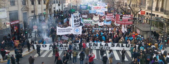 Los trabajadores del hospital pediátrico decidieron intensificar la protesta con una marcha masiva frente a la Casa Rosada.
